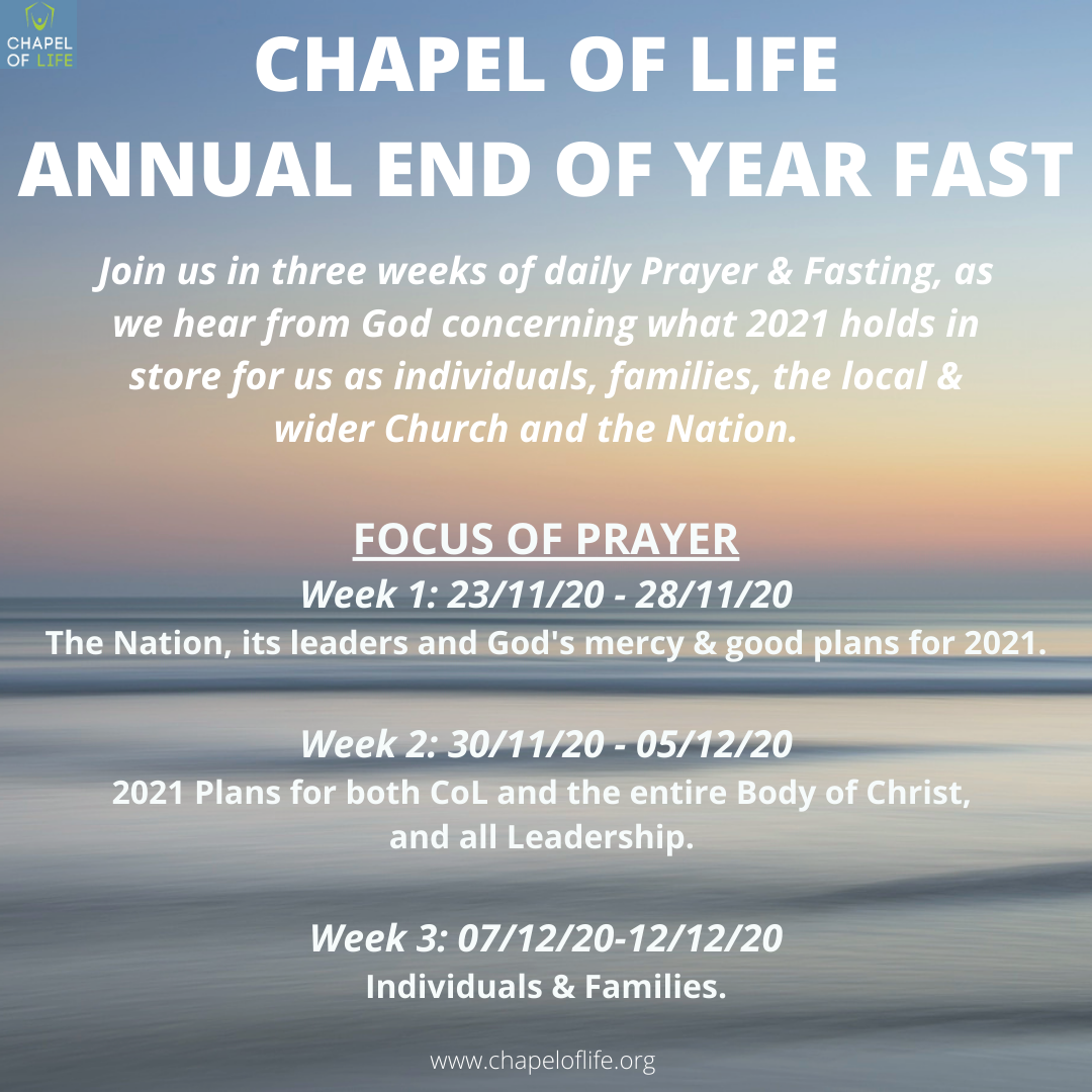Join us in three weeks of daily Prayer and Fasting, as we hear from God concerning what 2021 holds in store for us as individuals,…[..]